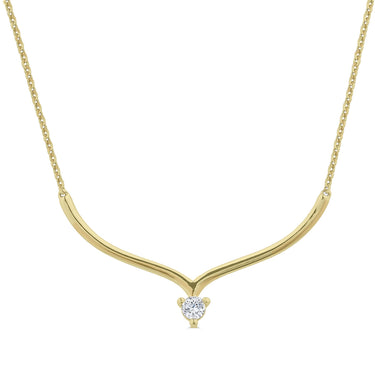 This softened V-curve sparkles in just the right spot. The delicate yet bold design enhances and adorns your unique beautiful shape. Set with a glimmering lab-grown diamond, .12 ctw