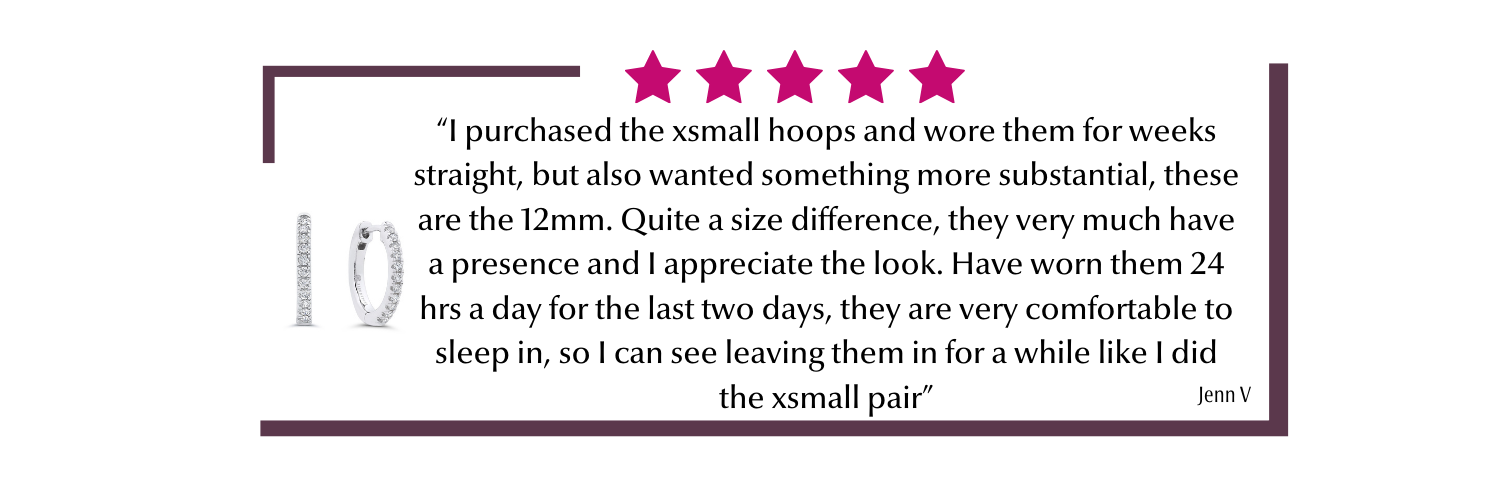 Discover your perfect hoop fit with the Seed2Stone Sizing Tool for Pavé-All-Day, Big-O, and Twin Solo Hoops. Includes a $10 discount code toward your next pair.