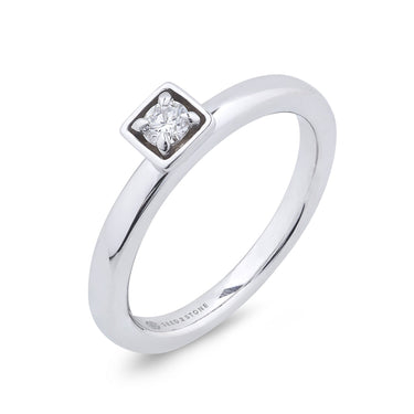 Modern geometric design for effortless 24/7 style. Medium square Cup stacking ring featuring a sustainable lab-grown diamond, .10 ctw✦ A great place to start a fabulous stack. The square sits above the band to allow for a flush stack.