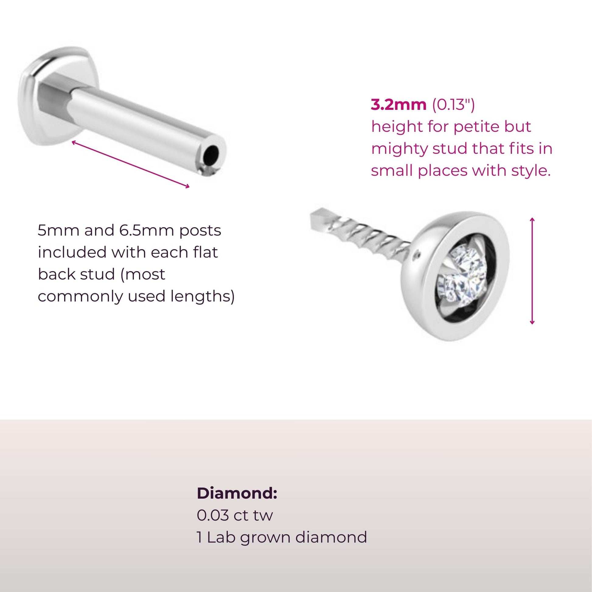 ✦ Two post lengths for a custom fit: 5mm and 6.5mm.
