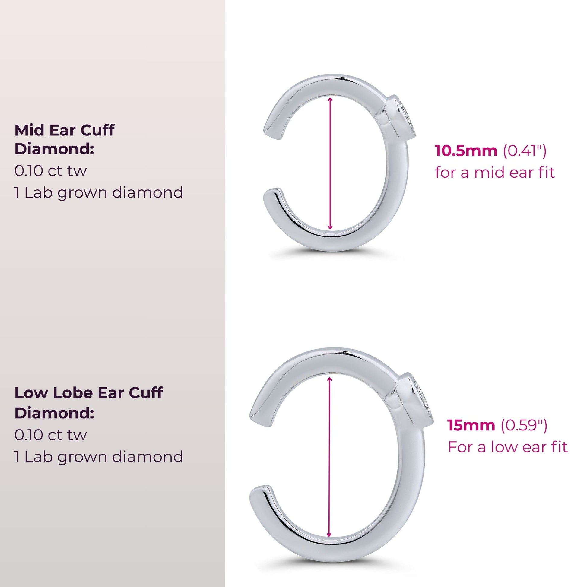 ✦ Dimensions: Mid Ear = .41" internal height (10.5mm) / Low Lobe = .59" internal height (15mm)