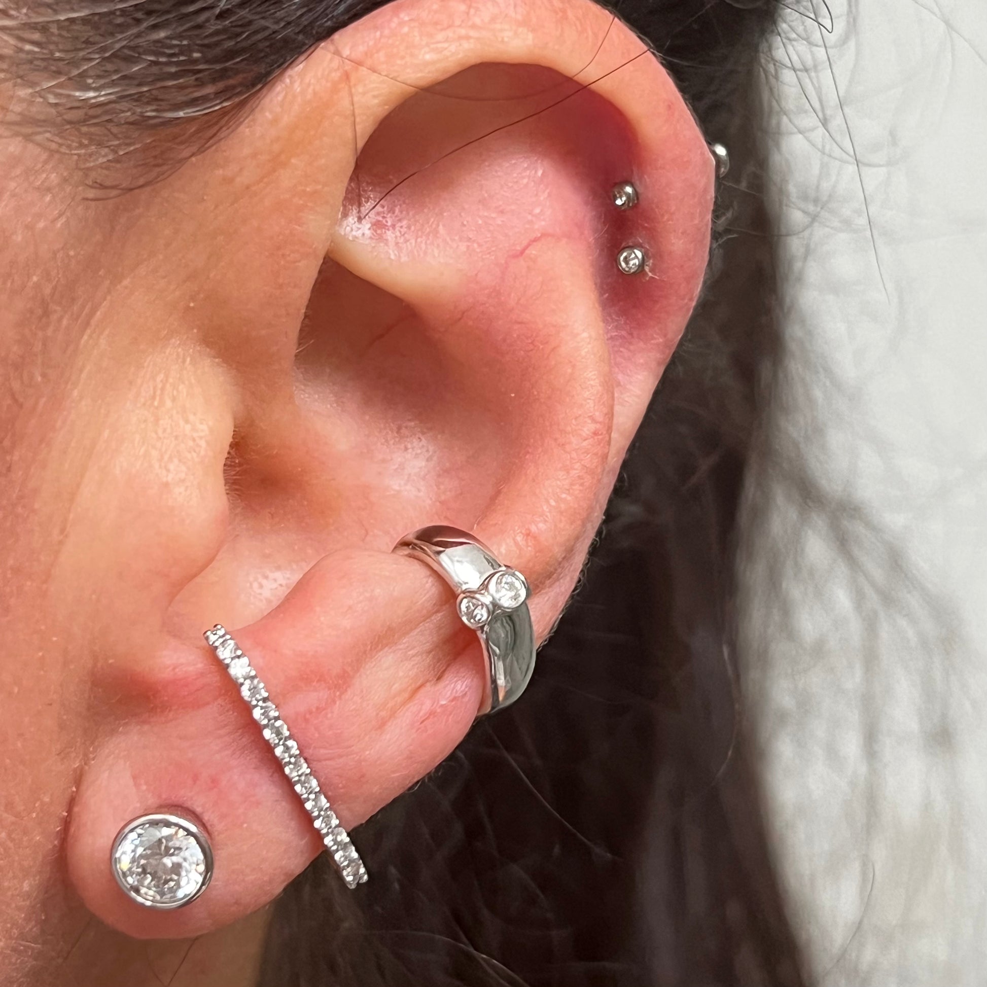✦ Experiment with any piercing or angle that fits your lobe top to bottom. Perfect for styling with ear cuffs for strong look.