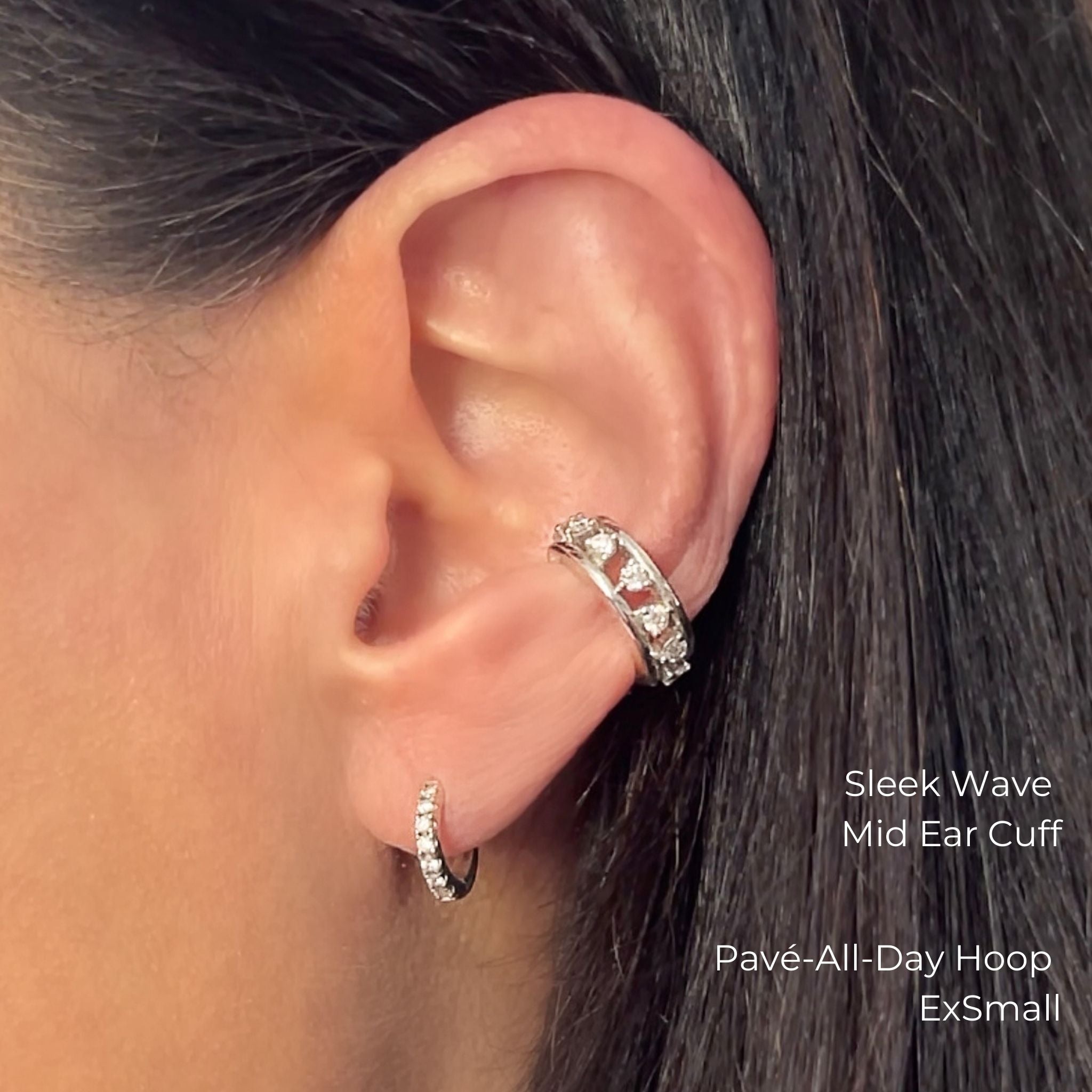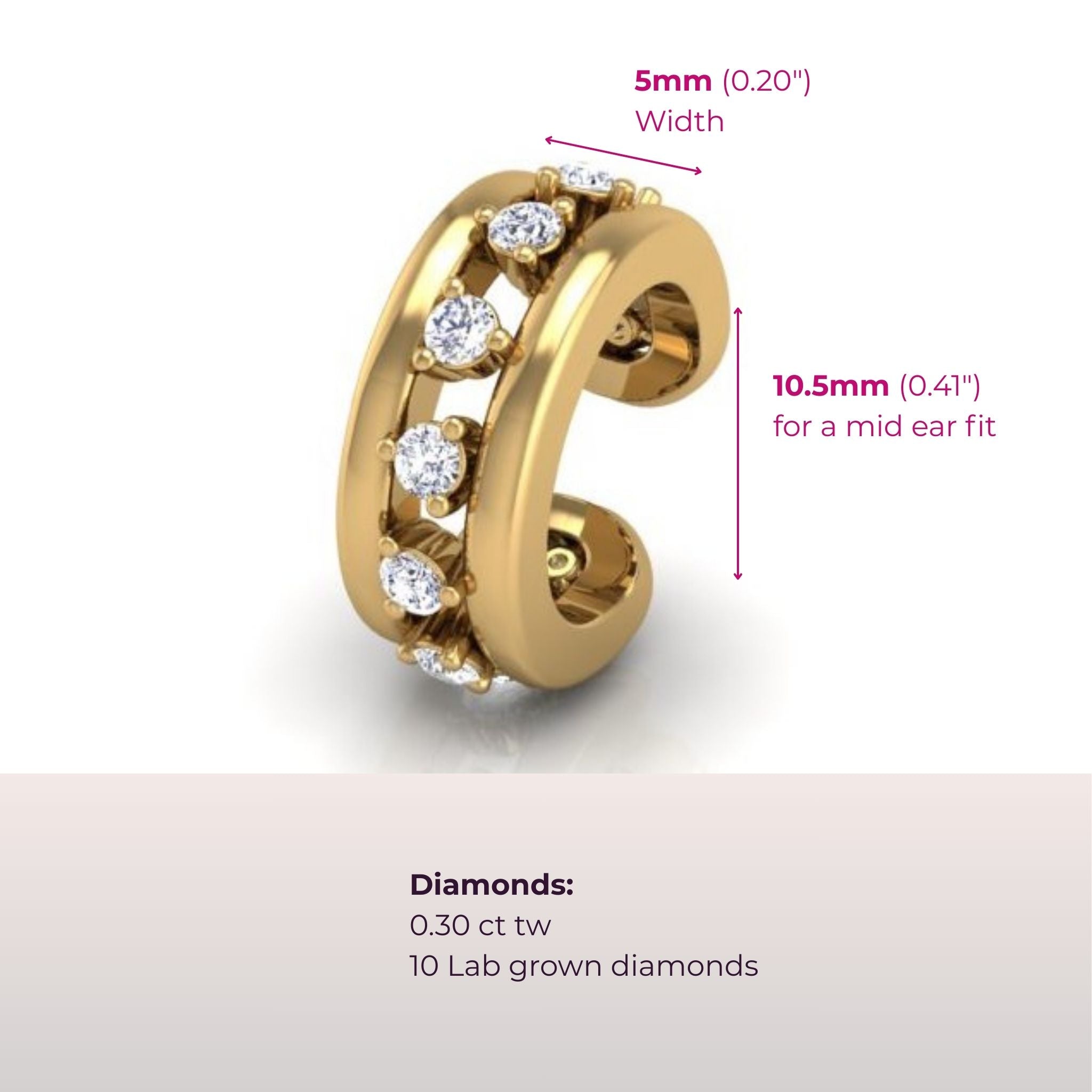 This very sparkly, bold mid ear cuff hugs your ear with a sleek wave of martini set,  lab-grown diamonds 0.30ctw. The no piercing required style fits comfortably and uniquely on everyone for an individual look that’s distinctly yours.