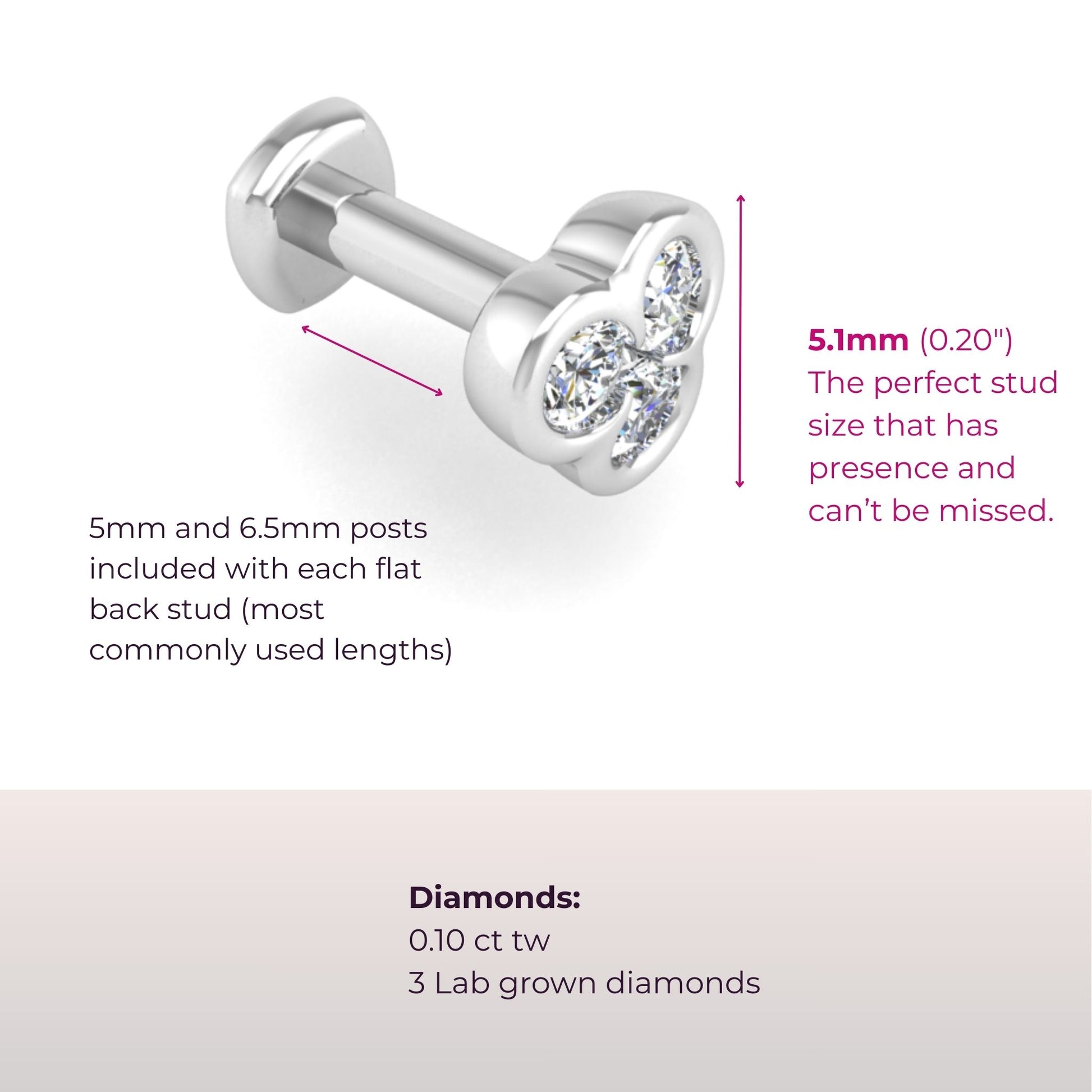 We know that comfort and fit will make the difference between an OK and everyday-never-take-off! All styles come with BOTH a 5mm and a 6.5mm post so that you have options.