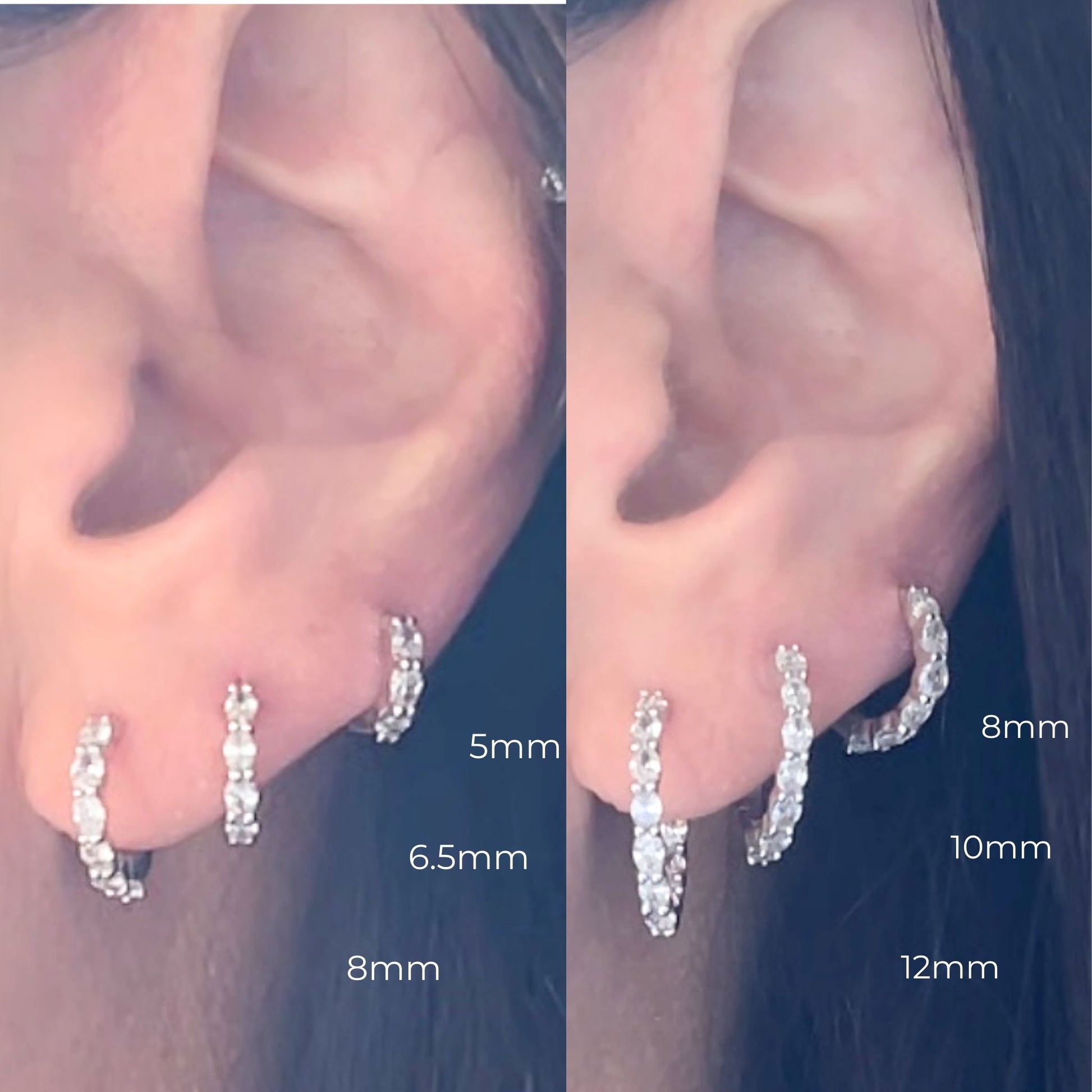 We know that comfort and fit will make the difference between an OK hoop and an everyday-never-take-off hoop. We have images to help you, but we will also help you with additional images, measurements and 1:1 video meetings to help you get the right fitting piece. All of our diameters are measured from the inside of the hoop -- the open space in the center only. If you have a hoop you love, place it on a ruler and read the diameter of the center space. If you have any questions, reach out to us and we will help you find your size.