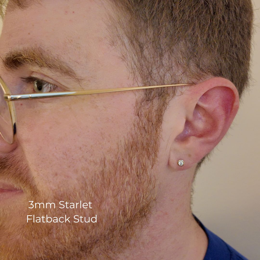Flat back studs are inserted from the BACK, then the front stone inserts into the opening and screws in place. They are a great option for those piercings that you do not change often and want to leave in all the time. The flat back means: