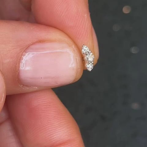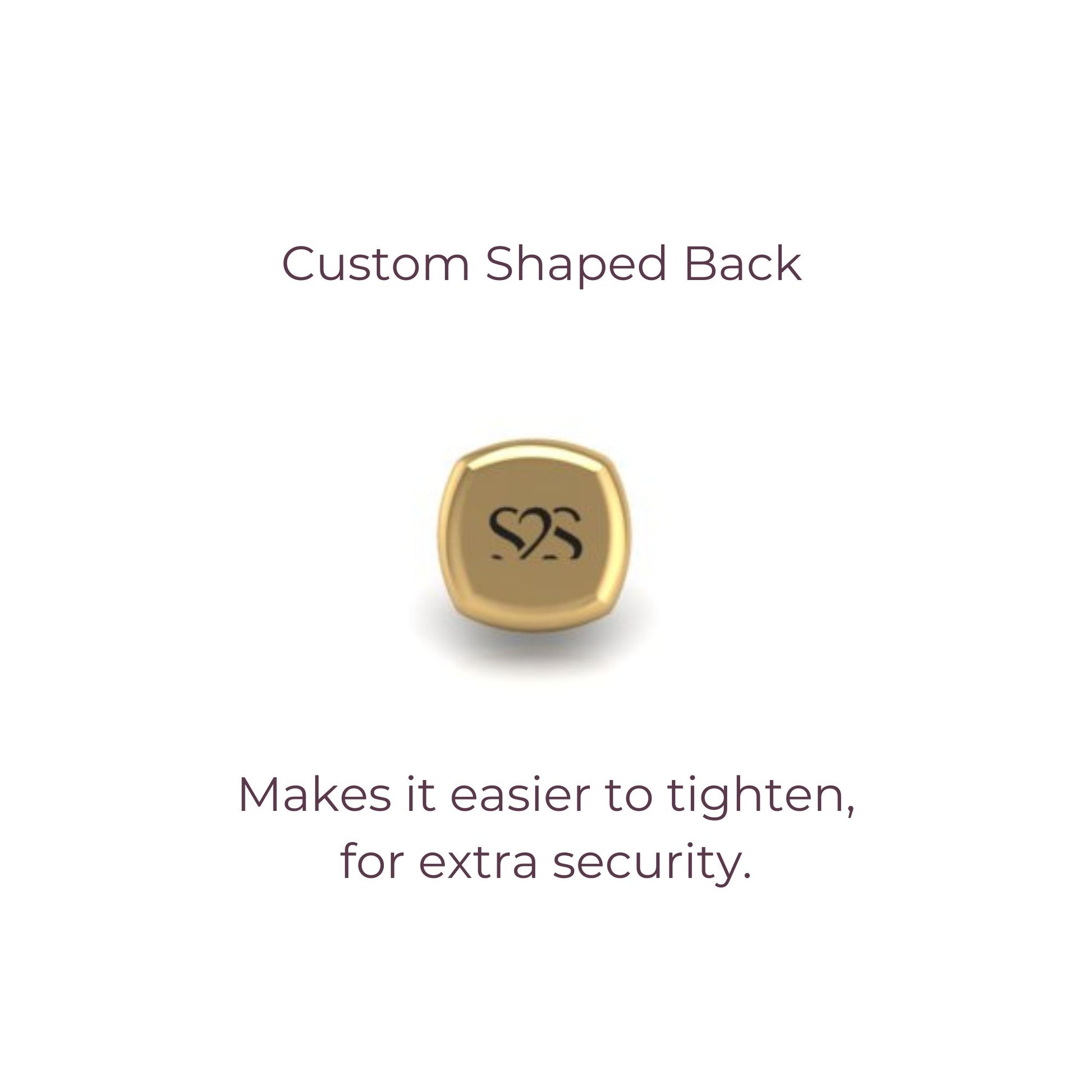 Flat back studs are inserted from the BACK, then the front stone inserts into the opening and screws in place. They are a great option for those piercings that you do not change often and want to leave in all the time. The flat back means: