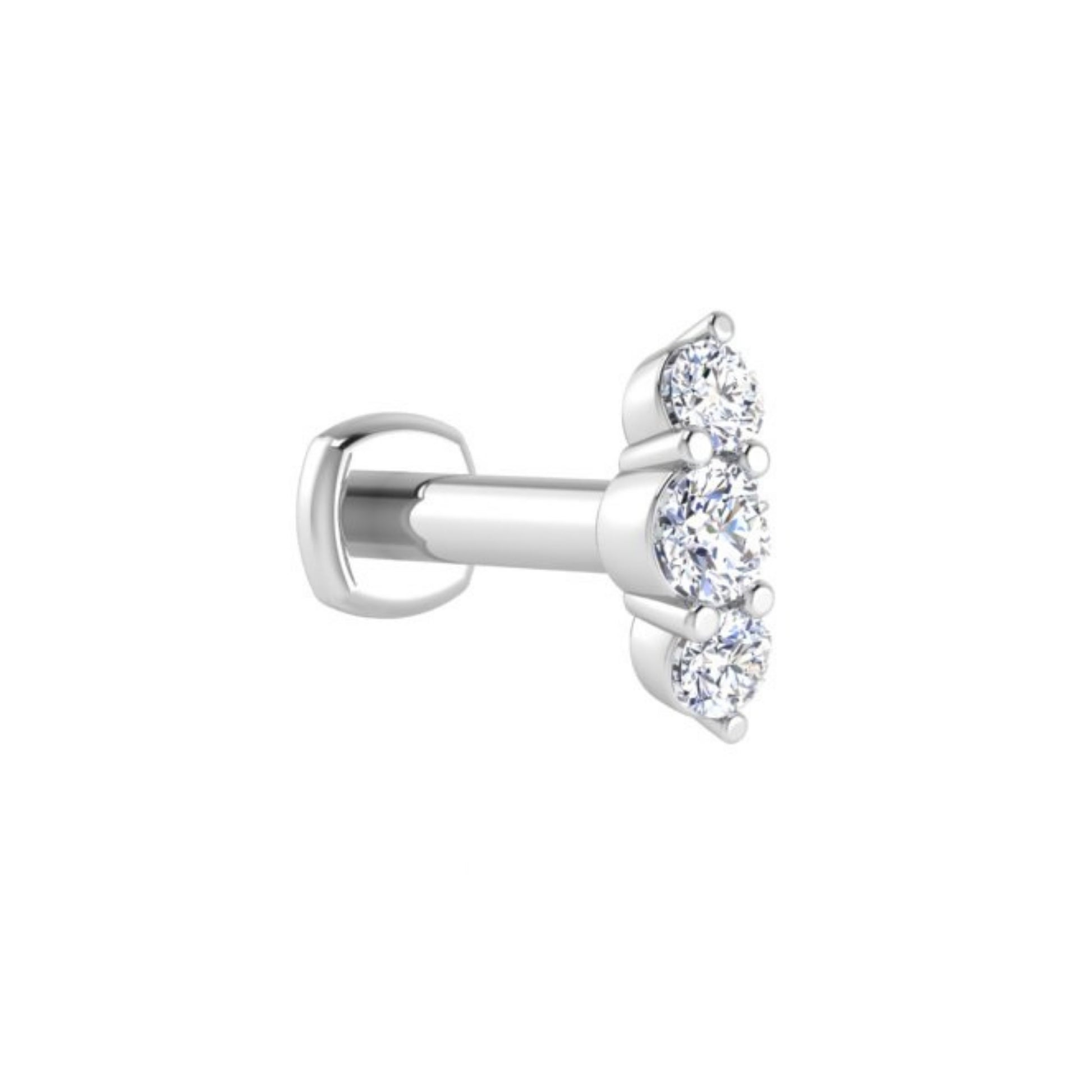 Flat back studs are inserted from the BACK, then the front stone inserts into the opening and screws in place. They are a great option for those piercings that you do not change often and want to leave in all the time. The flat back means: