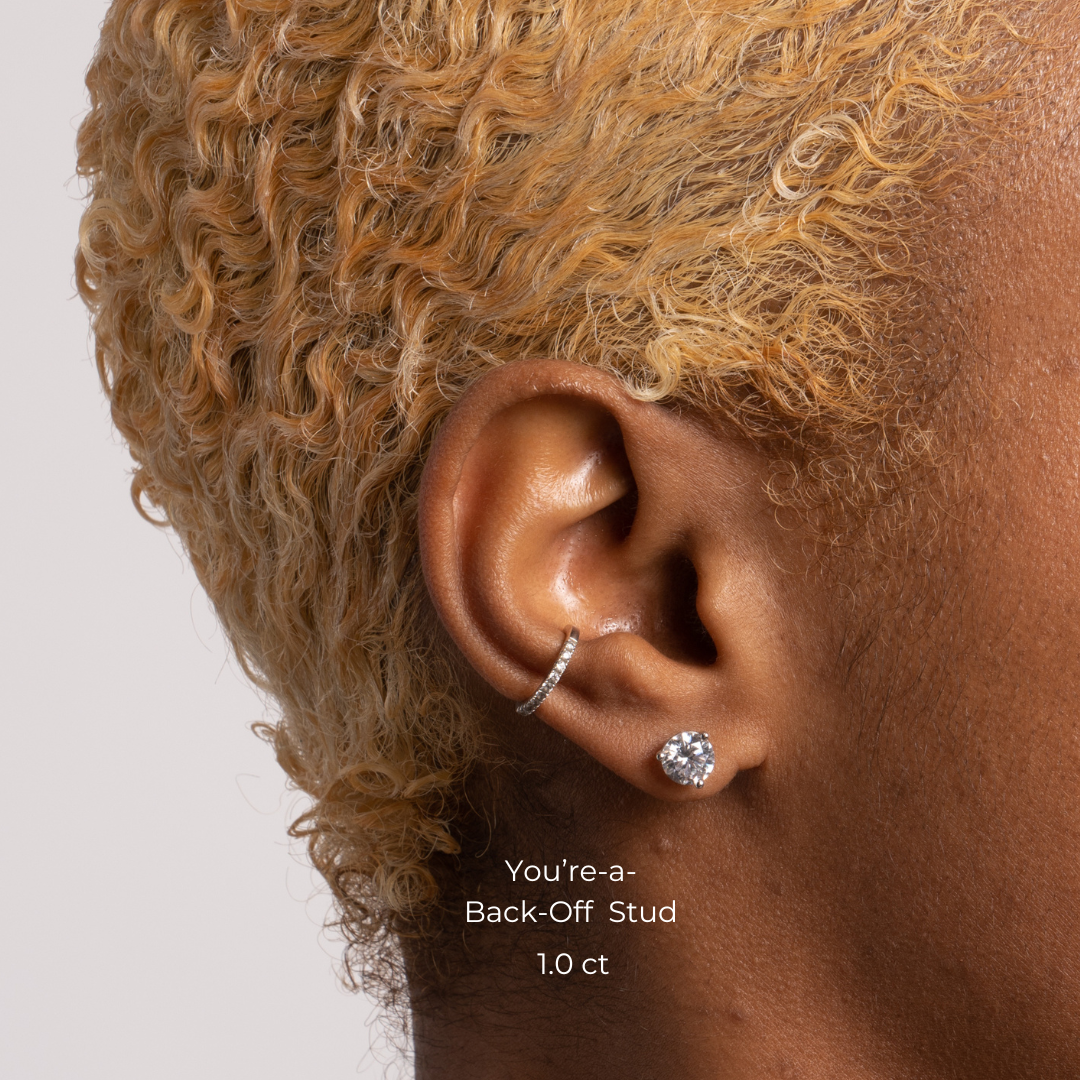 Low maintenance isn't just for our Flat Back Studs....After decades as a diamond jewelry product expert I have found the perfect combination of shortened post and super secure mechanical backing that needs to be released to come off. No extra material poking you behind the ear. Now, you can just focus on the SPARKLE!