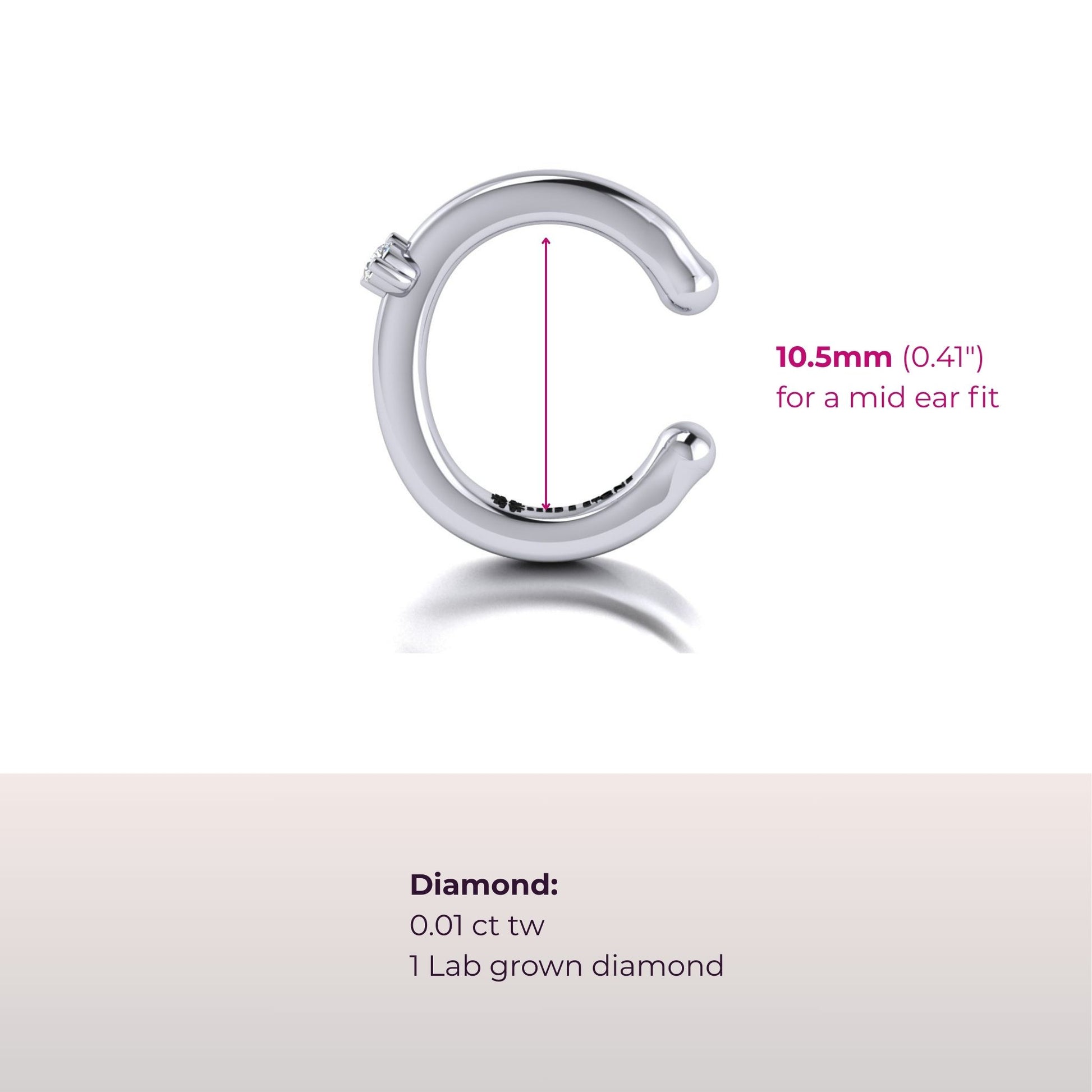 Our best-selling, no-piercing required sterling silver ear cuff is designed for maximum comfort and style. Accented with a 0.02 ctw lab-grown diamond, this mid-ear cuff slides perfectly into place, creating a dazzling sparkle effect. Benefits include: no piercing required, comfortable and secure fit, and versatile design that stacks beautifully with other ear cuffs or looks great alone.