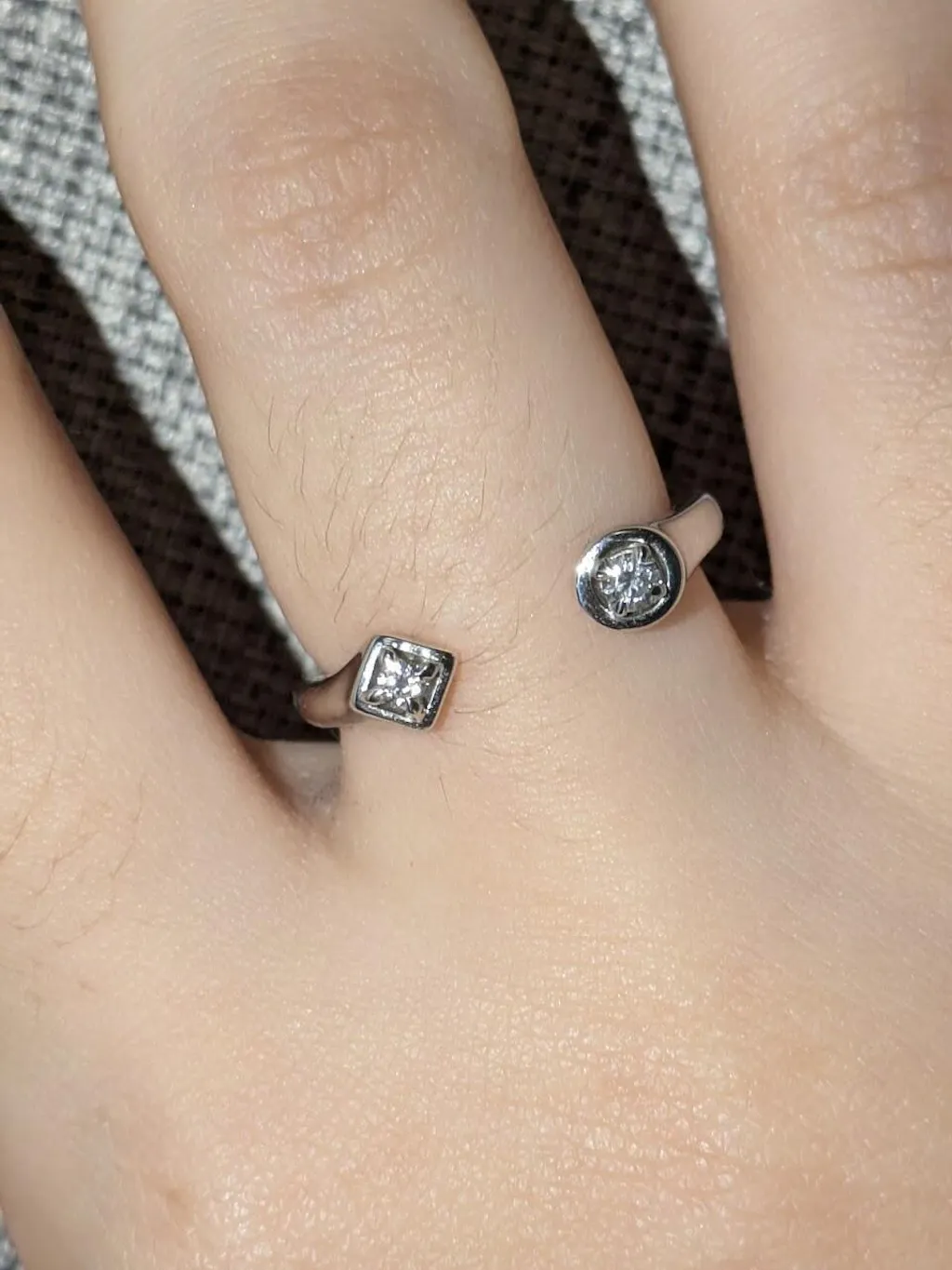 This modern ring adds sparkle and interest to every finger with two lab-grown diamonds, total 0.09 ctw✦ This versatile open horseshoe ring has flexible sizing to wear on any finger to change up your look. Easy to gift or self purchase when you don't worry about size