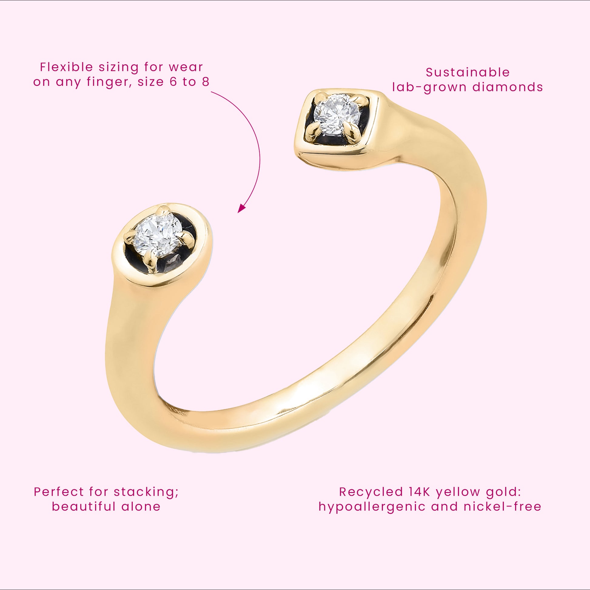 Delicate yet distinctive, this open horseshoe ring is a perfect style refresh. Two lab-grown diamonds, total 0.09 ctw✦ This versatile ring has flexible sizing for wear on any finger to change up your look.